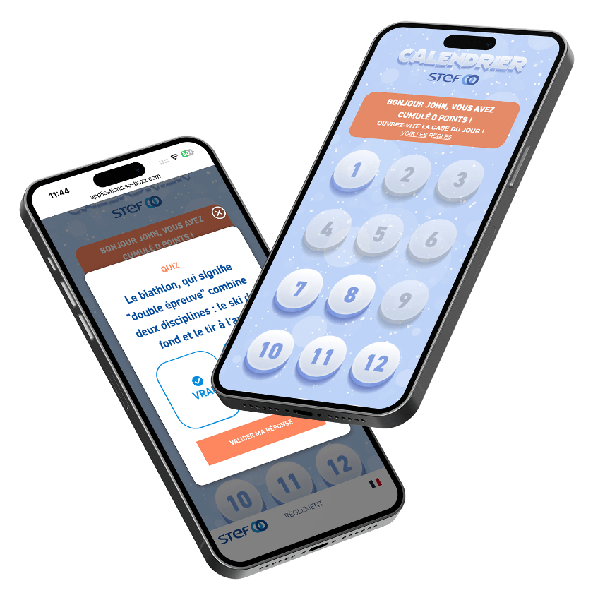 Grâce à des mécanismes ludiques tels que des jeux interactifs ou des challenges en équipe, vous dynamisez l’engagement de vos audiences externes tout en renforçant la cohésion et la motivation au sein de vos équipes. Cette approche innovante favorise non seulement l’adhésion à vos messages marketing, mais elle renforce également la fidélité des clients et la satisfaction des collaborateurs. Un atout majeur pour générer de la viralité, accroître votre notoriété et stimuler vos ventes pendant la période clé des fêtes.